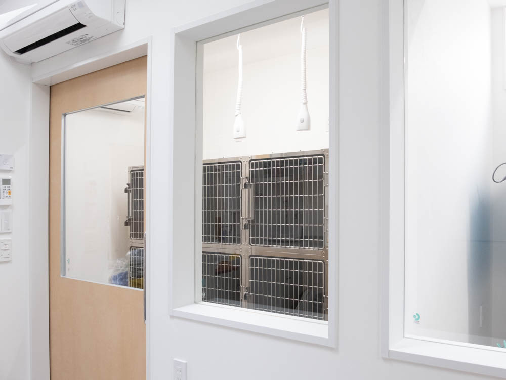 動物たちが安心できるように 当院は動物たちのストレスを軽減させるため、 わんちゃんとねこちゃんの入り口を分けております。 混雑時には大変窮屈に感じると思いますが、 ご理解とご協力ほどよろしくお願いいたします。 入口(左:ねこちゃん 右:わんちゃん) 受付 待合スペース(ねこちゃん診察室3・4) 待合スペース(わんちゃん診察室1・2) 診察室1(わんちゃん) 診察室2(わんちゃん) 診察室3(ねこちゃん) 診察室4(ねこちゃん) 手術室 わんちゃんケージ ねこちゃんケージ 大型犬専用ケージ 隔離用ケージ 院内ドッグラン
